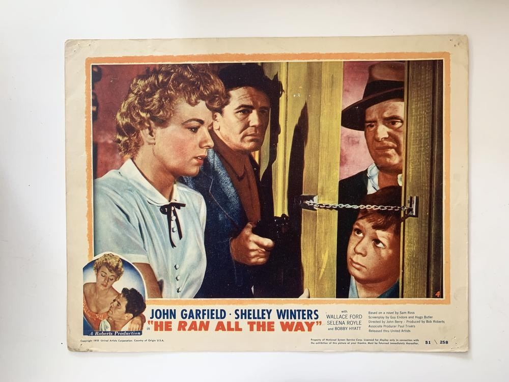 He Ran All the Way original 1951 vintage lobby card on heavy card stock. 11x14 inches