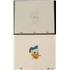 Head shot of Donald Duck * * * * * Original Animation Cel & DrawingMedium: Hand painted acetate celDetails: Animation notations and peg holes * * Original "rough" animation drawing, in non-photo blue and black pencil * * Size of cel: 10 1/2 x 12 1/2 inchesSize of drawing: 10 1/2 x 12 1/2 inches * * Condition: Very good * This is an original hand-painted cel set-up used in the production of the "Walt Disney Shows." Each one-of-a-kind set-up represents a slight change in position of the characters. When individually photographed and projected in rapid succession, the images appear * to move. To created production cels, the original animator's drawing is transferred onto an acetate cel (by hand-inking and/or photo copying). The cel is then hand-painted on the reverse side. * * * * * The cel and drawing received may be ever so slightly different than the one shown in the auction photo. * * * * Traditional animation is a multi-step process which includes various types of art techniques. Drawings are a key part of the process, in which the animator creates the design and movement of the characters. Drawings are then transferred onto acetate cels * (by hand-inking and/or photo copying) to create a production cel, which is then hand painted on the back side, using paint colors chosen and approved by the creator of the series.