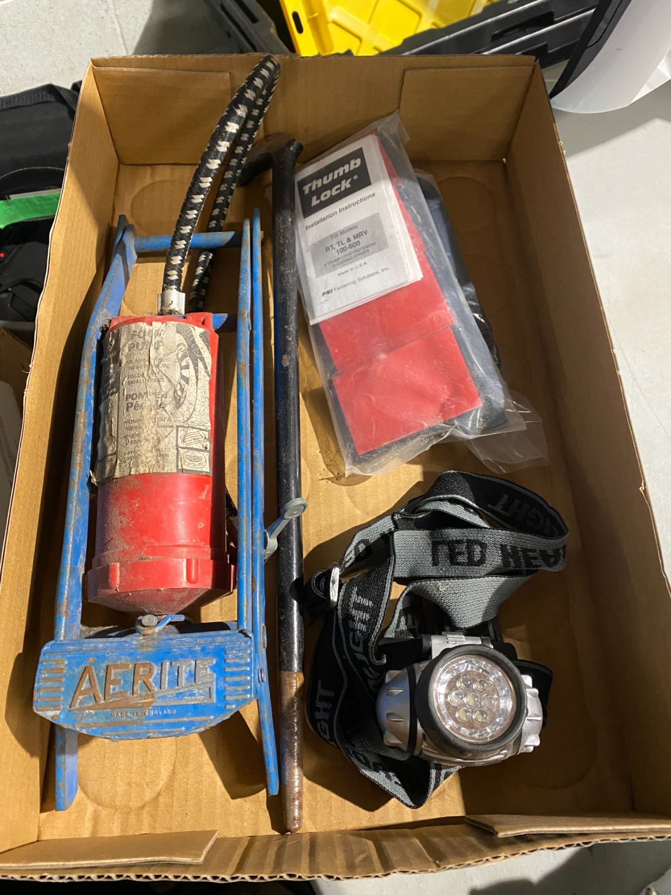 Headlamp, foot pump etc
