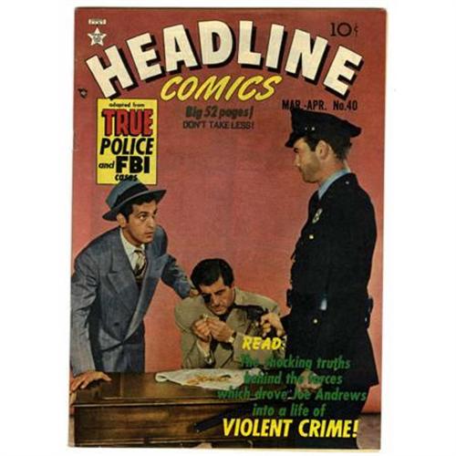 <B>Headline Comics #40 Mile High pedigree (Prize, 1950) Condition: VF+.</B></I> Mort Meskin art. Overstreet 2007 VF 8.0 value = $54; VF/NM 9.0 value = $72.<BR><BR><b>Shipping:</b> Comics - Unslabbed (<a target="_blank" href="http://www.heritageauctions.com/common/shipping.php">view shipping information</a>)