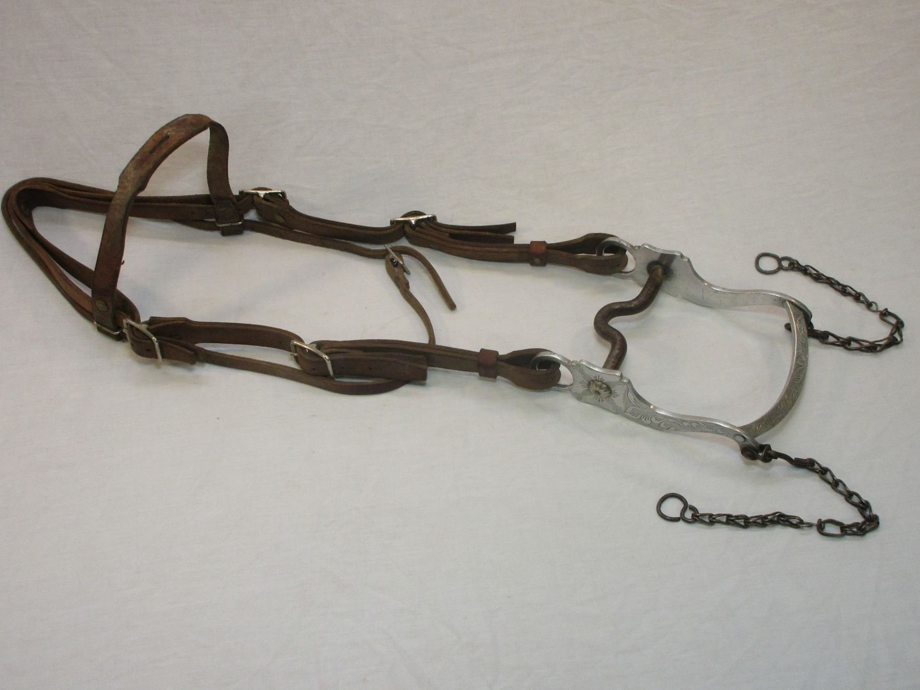 Headstall With Silver Overlaid Stainless Bit- Might Be Walla Walla Prison- Nevada Cheek Curb Mouth- Slobber Bar- Rein Chains
