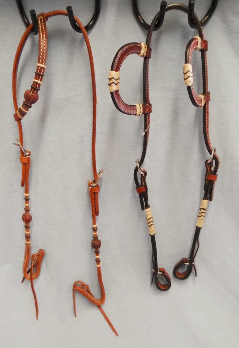 Headstalls (2) - single ear with rawhide and double ear with rawhide