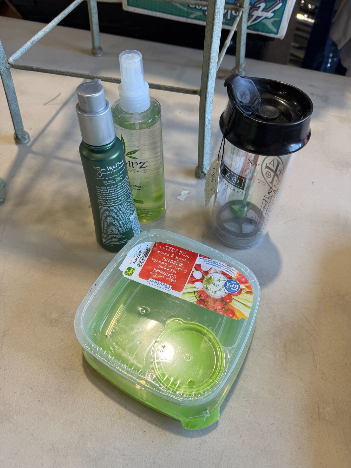 Health and beauty items container, and teacu