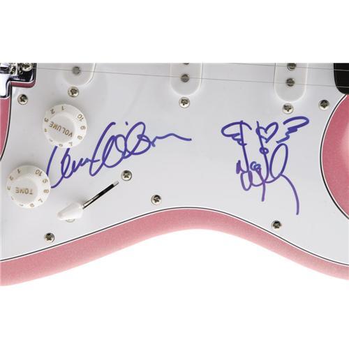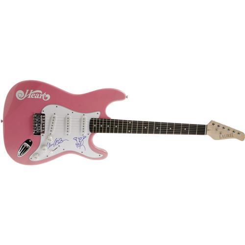 <B>Heart Autographed Guitar.</B></I> A pink Laurel six-string electric guitar decorated with band logo and signed by Ann and Nancy Wilson in blue marker on the pick guard. In Excellent condition.<BR><BR><b>Shipping:</b> Musical Instruments, Large (<a target="_blank" href="http://www.heritageauctions.com/common/shipping.php">view shipping information</a>) <BR><BR><B>Important not