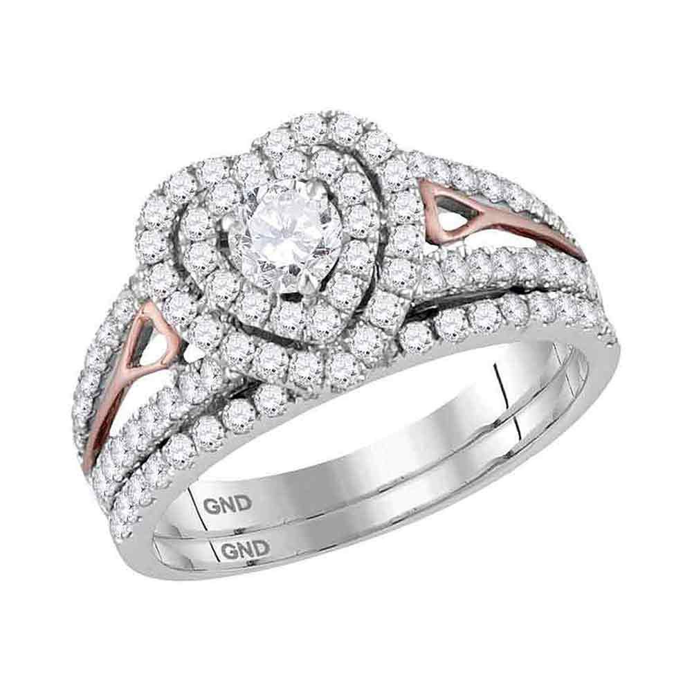 14kt Two-tone Gold Diamond Heart Bridal Wedding Ring Band Set 1-1/5 Cttw.