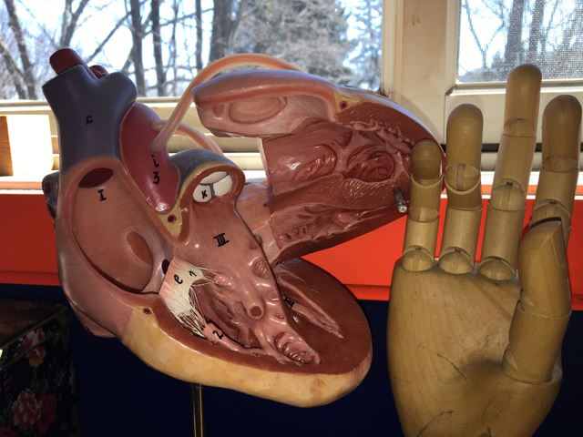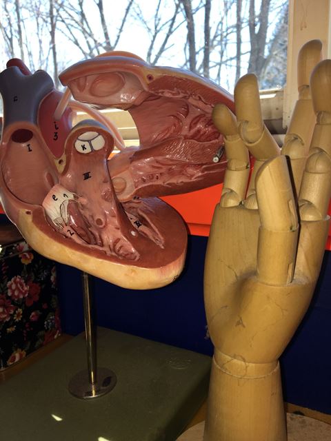 3-D Anatomical Heart Diagram and Wooden Articulated Artist Hand. This lot can be picked up in Woodbury CT for local buyers, or our shipper can pick up and ship to your location.