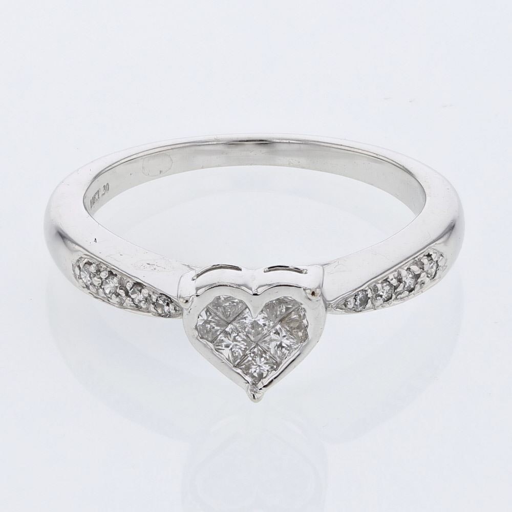 Heart Invisible-set Princess Cut Diamond Ring in 10K White Gold | 339763 6.5 Grams, featuring 0.24 White Diamond Round ct 8 0.06 ct 8 ct 10 ct