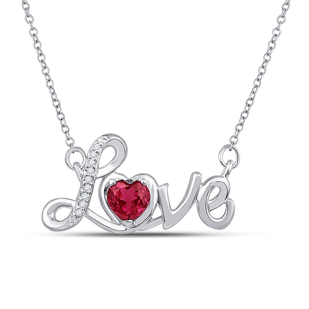 Sterling Silver Womens Heart Lab-Created Ruby Heart Necklace 1/2 Cttw