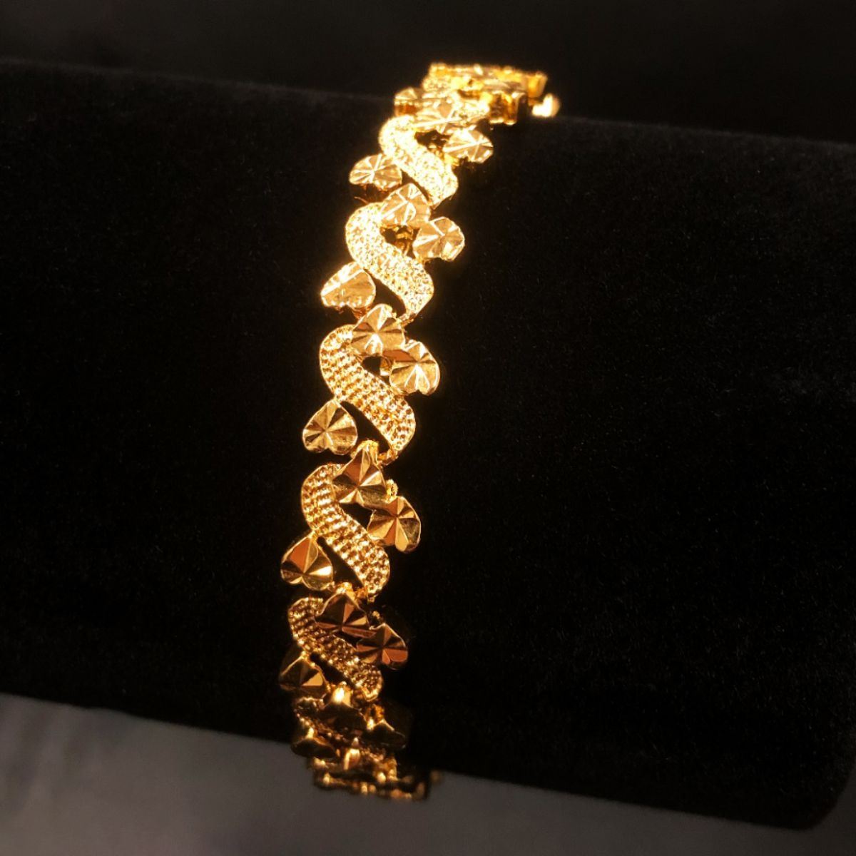 Heart Leaf Link Chain Bracelet Solid 24k Yellow Gold Filled. View Photos For Further Details.