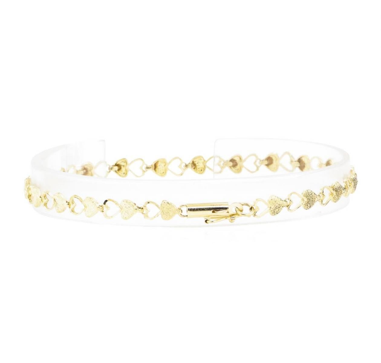 One heart link bracelet measuring approximately seven inches in length and 4.5mm in width featuring: 14KT yellow gold weighing 4.0 grams.