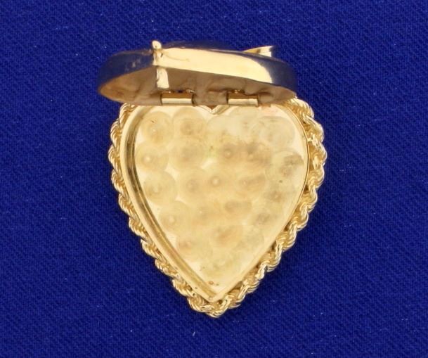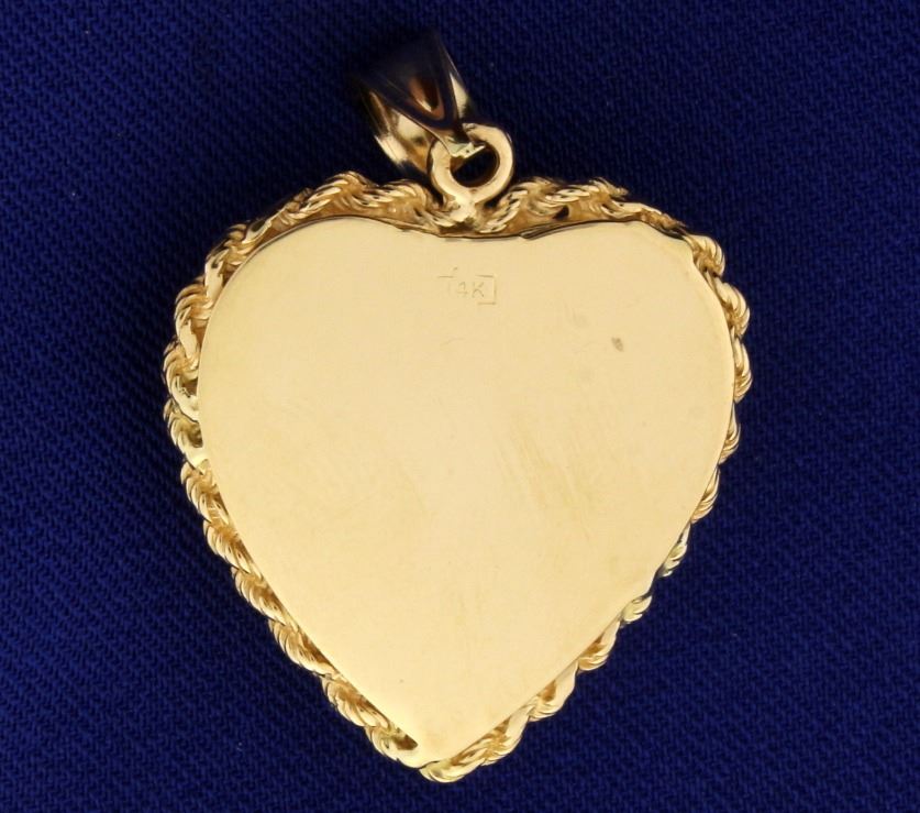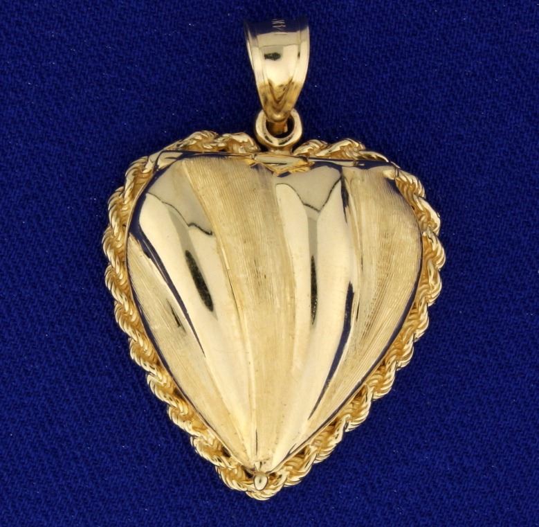 In 14k yellow gold. 1 1/2" long with bale. 1" wide. 11.4g.