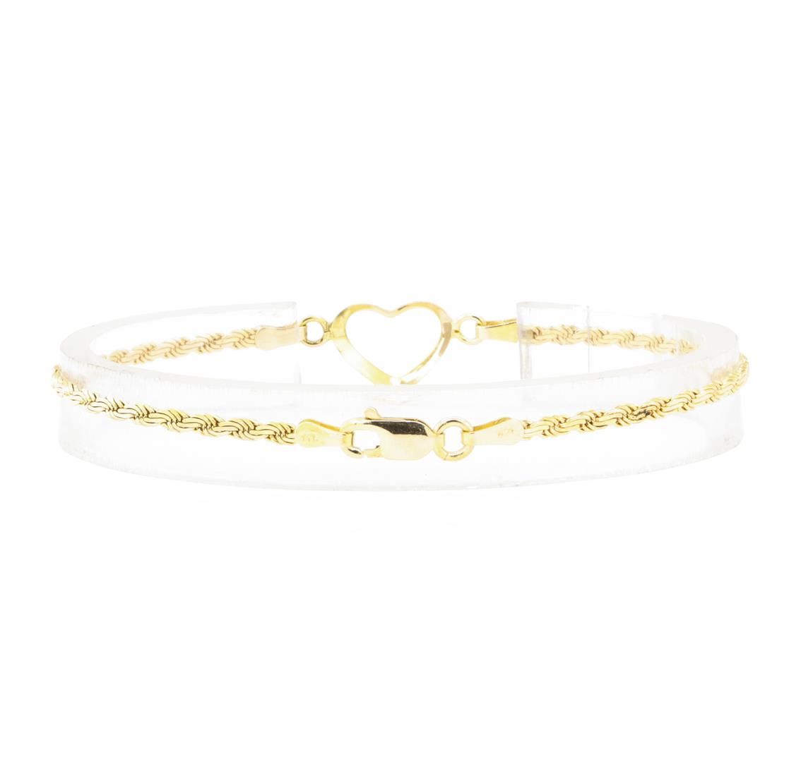 One heart motif bracelet measuring approximately seven inches in length featuring: 14KT yellow gold weighing 3.2 grams.