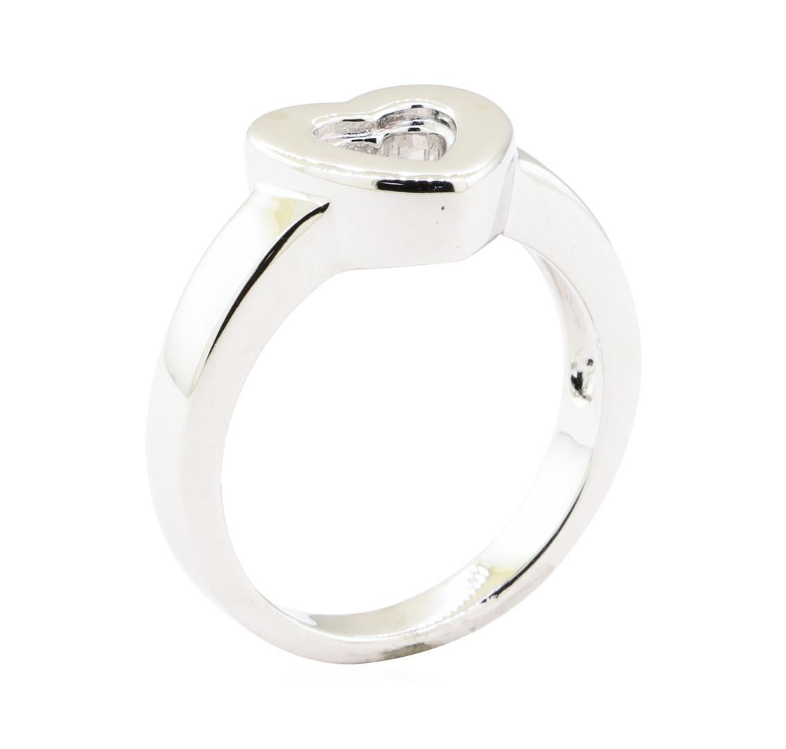 One ring with a heart shaped motif featuring: 18KT white gold weighing 6.4 grams.