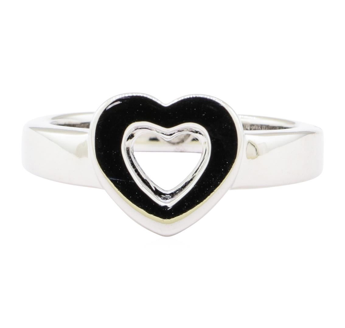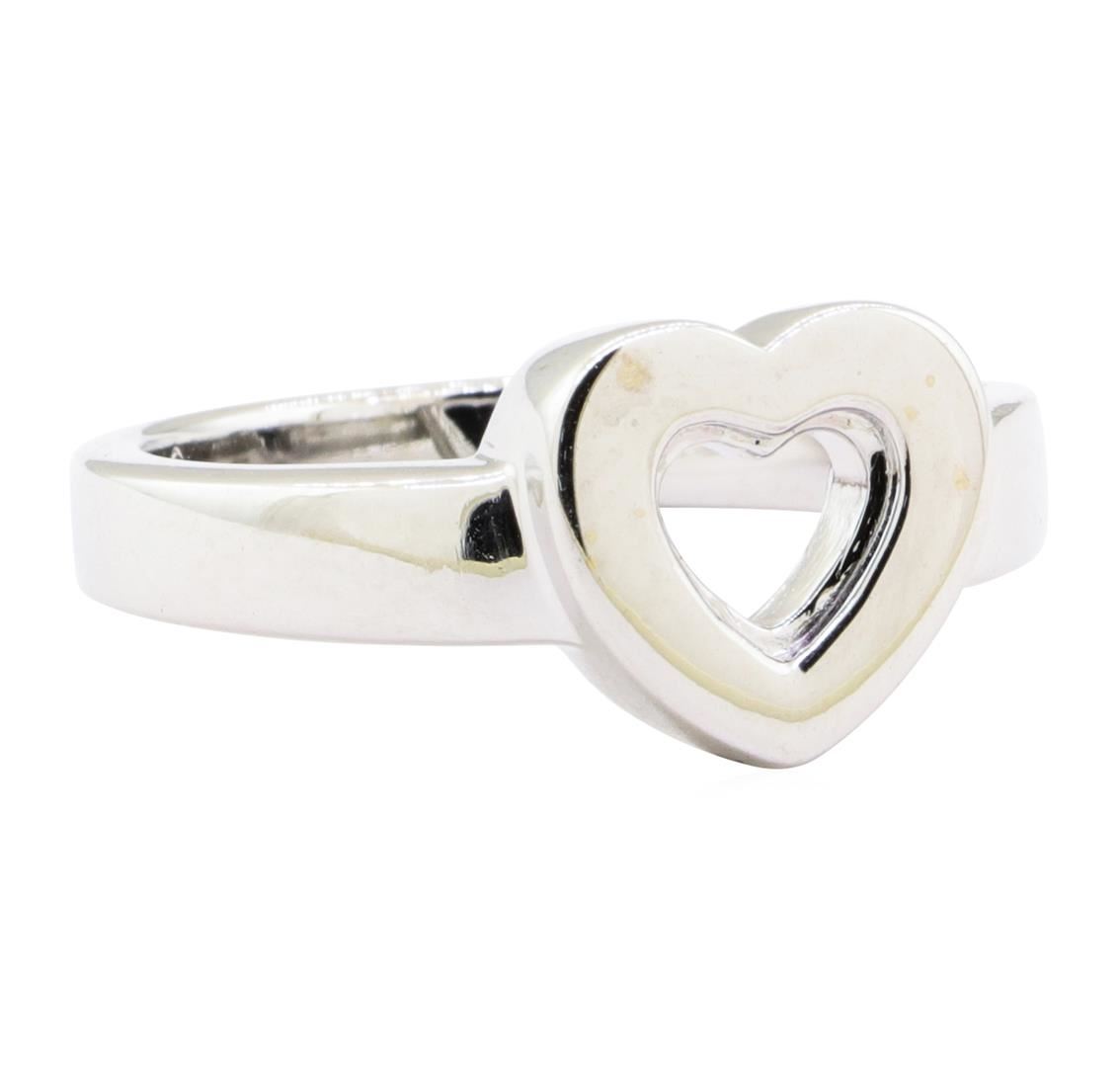 One ring with a heart shaped motif featuring: 18KT white gold weighing 6.4 grams.