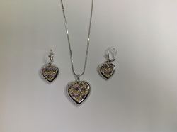18" Necklace with Pendant and Lever-Back Earring Set Rhodium-Plated Heart-shaped with Multicolor Round Cubic Zirconia in Gift Box