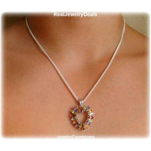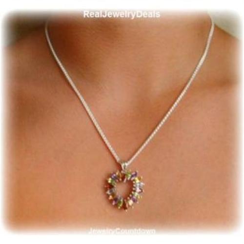 Big New Heart Pendant Solid Sterling Silver Genuine Gemstones: Amethyst, Garnet, Citrine, Peridot, Blue Topaz