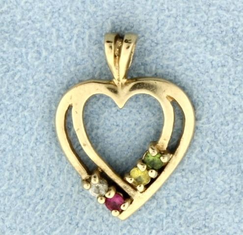 In 10K yellow gold it is 3/4 inch long and contains a 2mm round white sapphire, ruby, citrine, & peridot gemstones. 1.1g
