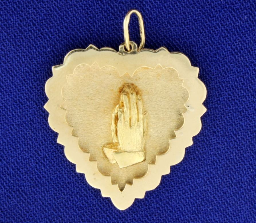 This pendant is 14K yellow gold and is 1 1/4 inch long. 3.6g