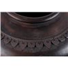 For your consideration is this large heart ring, earthenware ceramic pot, circa 20th century. This is a good, well-constructed pot with a textured ring halfway up the pot and a beautiful ring of hearts around the neck. The type of clay used is dark earthenware clay, which is a low fired ceramic clay. It is decorated to look like a wooden vessel. The condition of this ceramic pot is good, with no obvious signs of damage. The measurements of this large pot are 10 1/2" x 16 1/2" x 16 1/2".