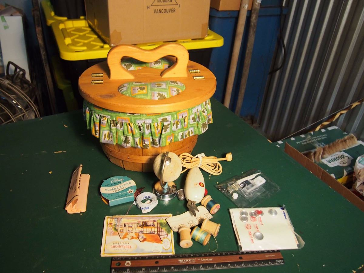Heart Sewing Caddie (With Contents: Globe Pin Cushion, Electric Scissors, etc;)