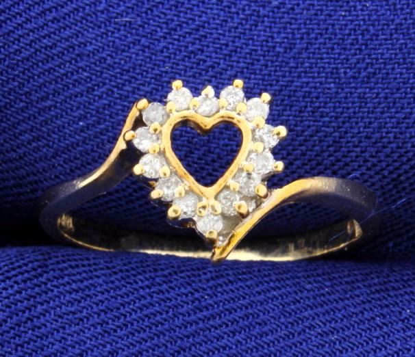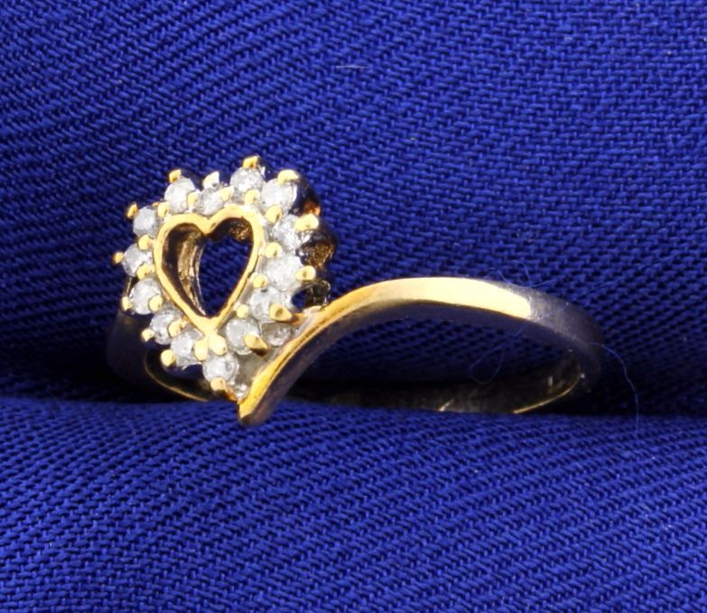 10k yellow gold. There are 14 brilliant cut diamonds. The mounting is 10k yellow gold and contains 1/5 carat. Size 7. 2.2g