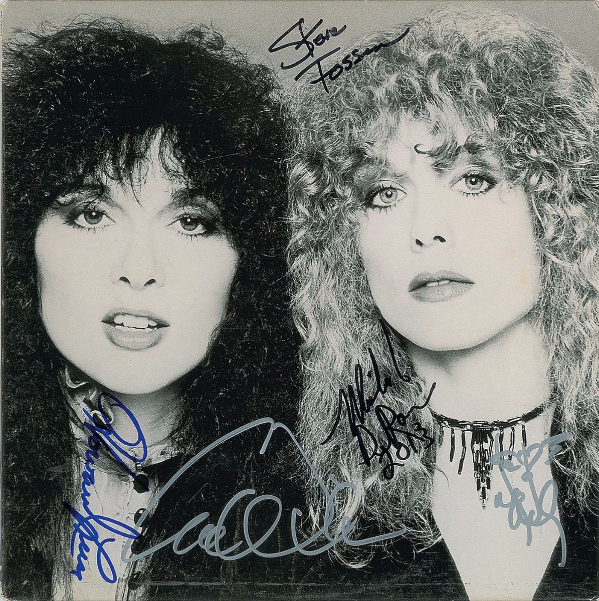 Bebe le Strange album signed on the front cover in silver ink, “Ann Wilson” and “Nancy Wilson,” the latter adding a heart with wings, in black felt tip, “Steve Fossen,” and “Michael Desrosier, 2013,” and in blue felt tip, “Howard Leese.” In fine condition. The record is included.