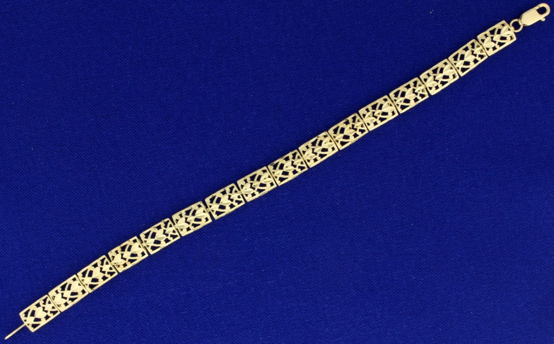 In 10K Yellow Gold. 7" long, 1/4 inch wide, with lobster clasp. 4.5g