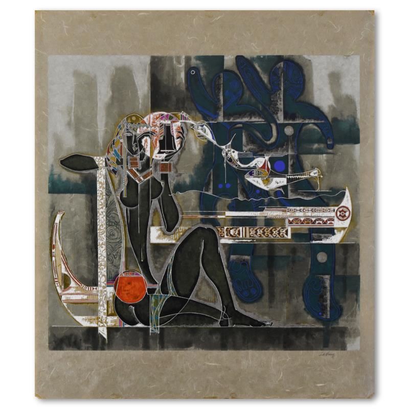 "Heart and Soul" is a limited edition serigraph on rice paper by Lu Hong, numbered IC/C and hand signed by the artist. Includes Letter of Authenticity. Measures approx. 33" x 38" (with border), 30" x 29" (image).