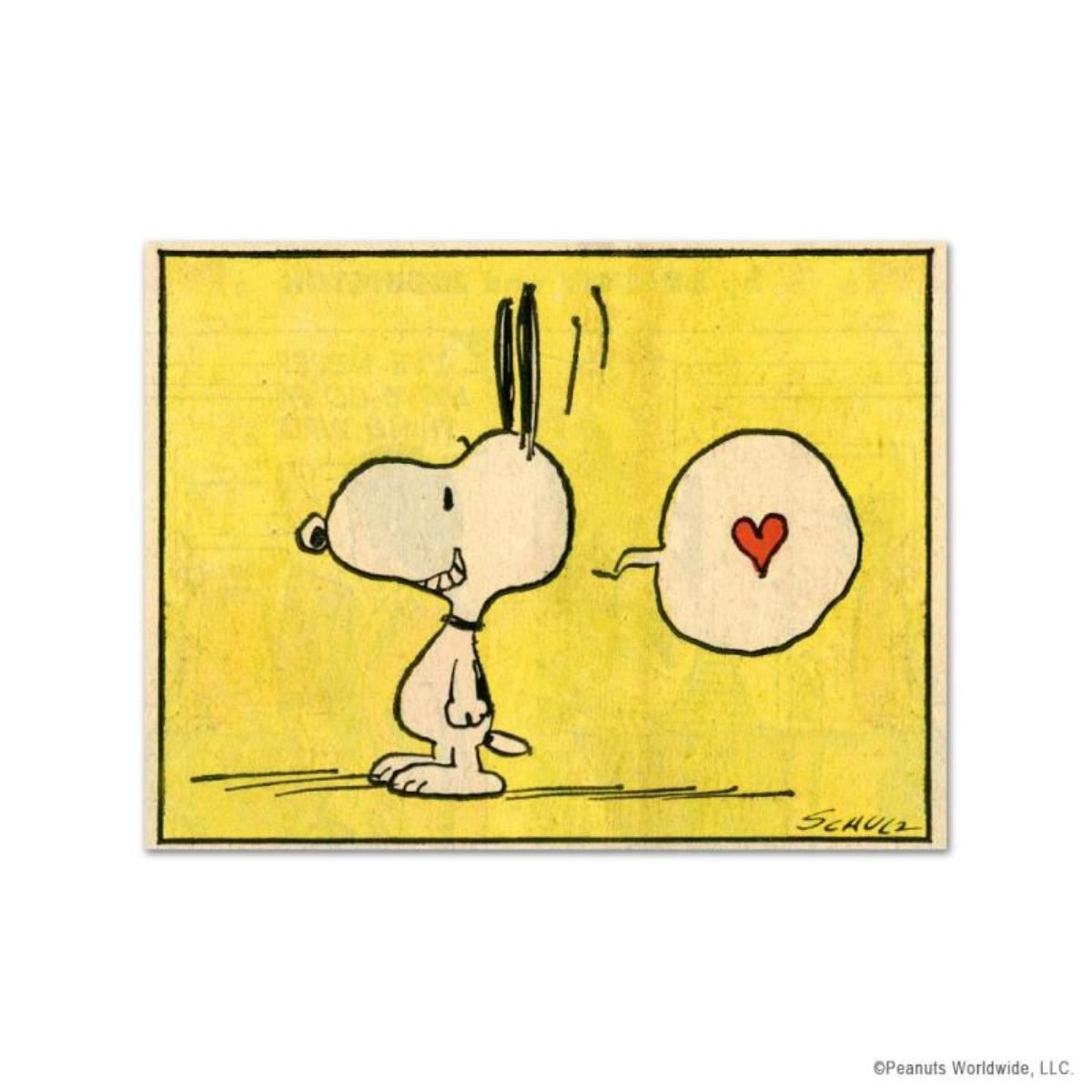 A vibrant and striking edition portraying the simple yet emotive art of Charles. M. Schulz, creator of PEANUTS . You'll love the color, it really POPS in person! A celebration of the classic comic style, It looks incredible on the wall and will be an important addition to any living space. "Heart" is an official Limited Edition Chromatic Pigment Ink Fine Art Print on 308gsm acid-free Photorag paper, created from the original artwork archived at the studio. Celebrating 65 years of PEANUTS Heritage. Hand numbered, includes Certificate of Authenticity. Measures approx. 31" x 24" and published to a strict edition of only 299 pieces.