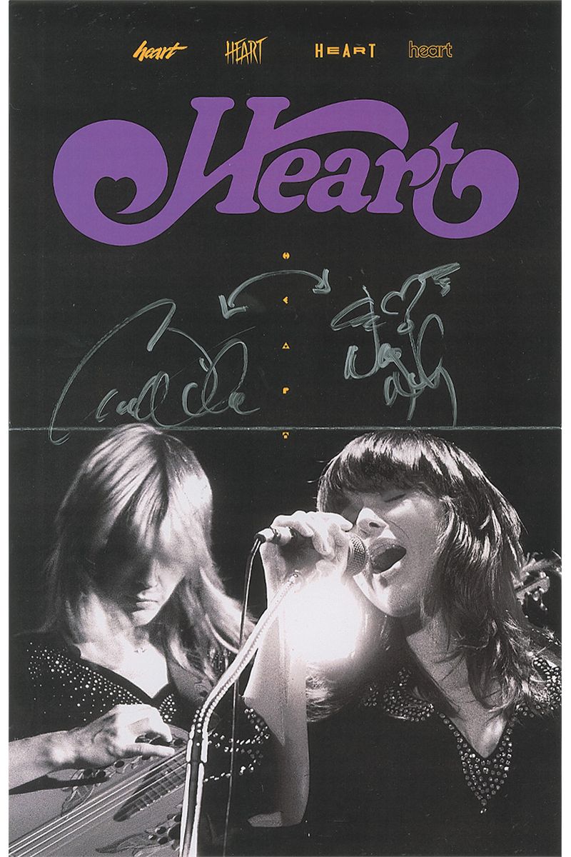 Color 11 x 17 poster of the Wilson sisters, signed in silver ink by Ann and Nancy Wilson, who adds a small sketch of a heart with wings. In fine condition, with a central horizontal fold.
