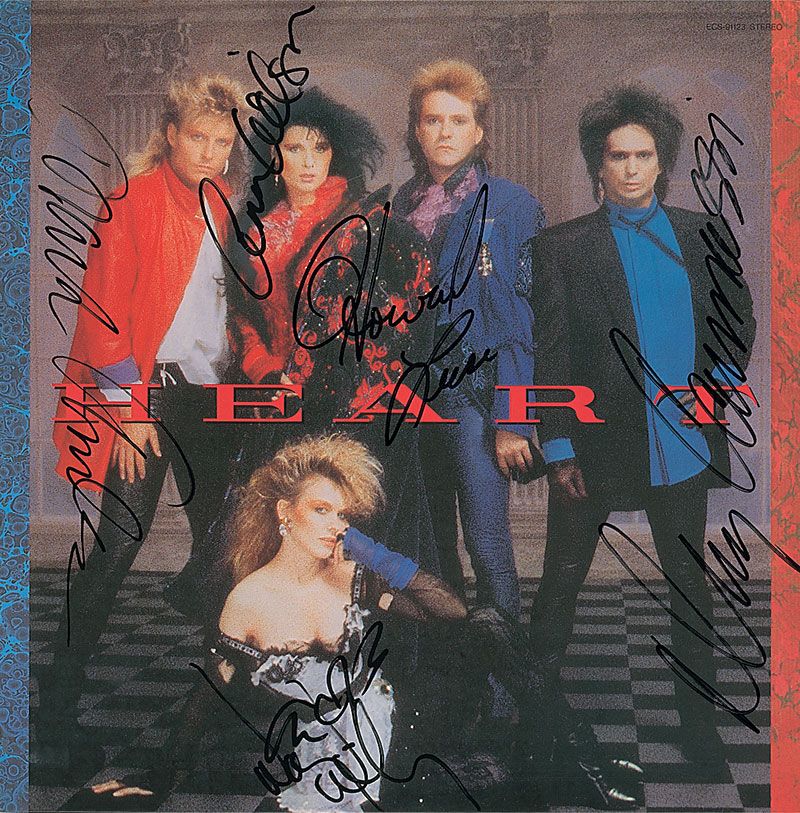 Self-titled album (Japanese edition) signed on the front cover in black felt tip by Ann Wilson, Nancy Wilson, Howard Leese, Mark Andes, and Denny Carmassi. In fine condition. The record is included.