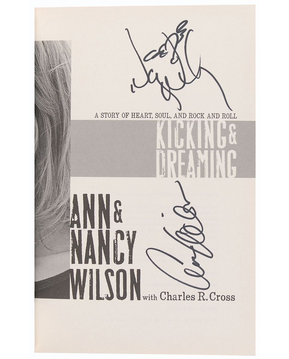 Two items: hardcover copy of Kicking and Screaming, signed on the title page by Ann and Nancy Wilson; and a color cardstock 10 x 8 photo of the Wilsons, signed in black felt tip by both. In fine condition.