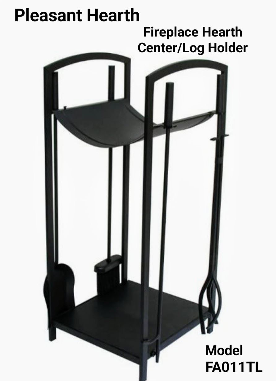 Multi-functional hearth center, stores logs and tools, durable metal construction, new.
