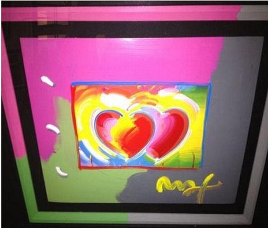 "Hearts (Pink)" Peter Max Original Mixed Media - Professionally Framed & Matted - Hand Signed And Embellished By Peter Max - Authenticated With Max Gallery Copyright Stamp And Serial Number On The Back - Paper 13" X 17"