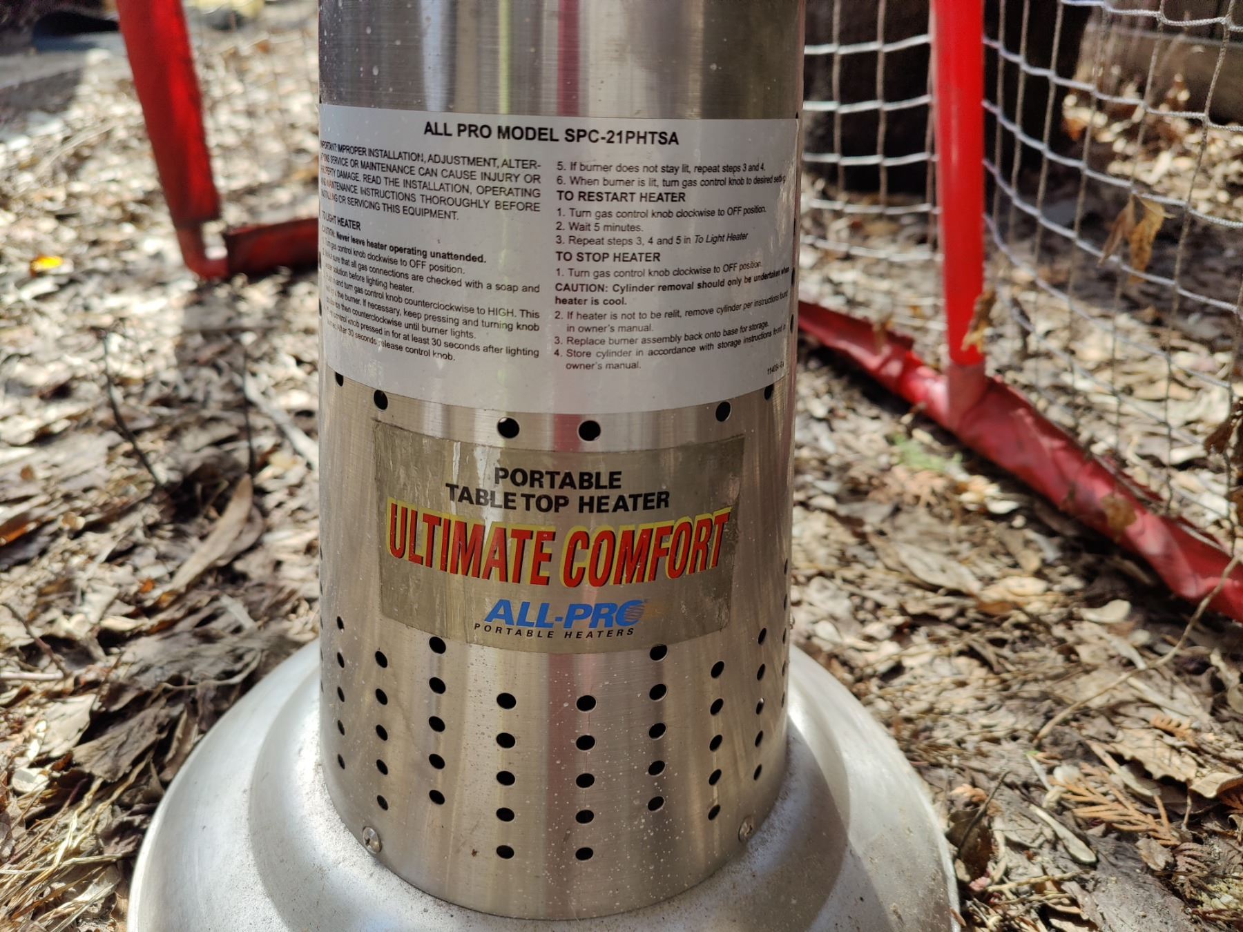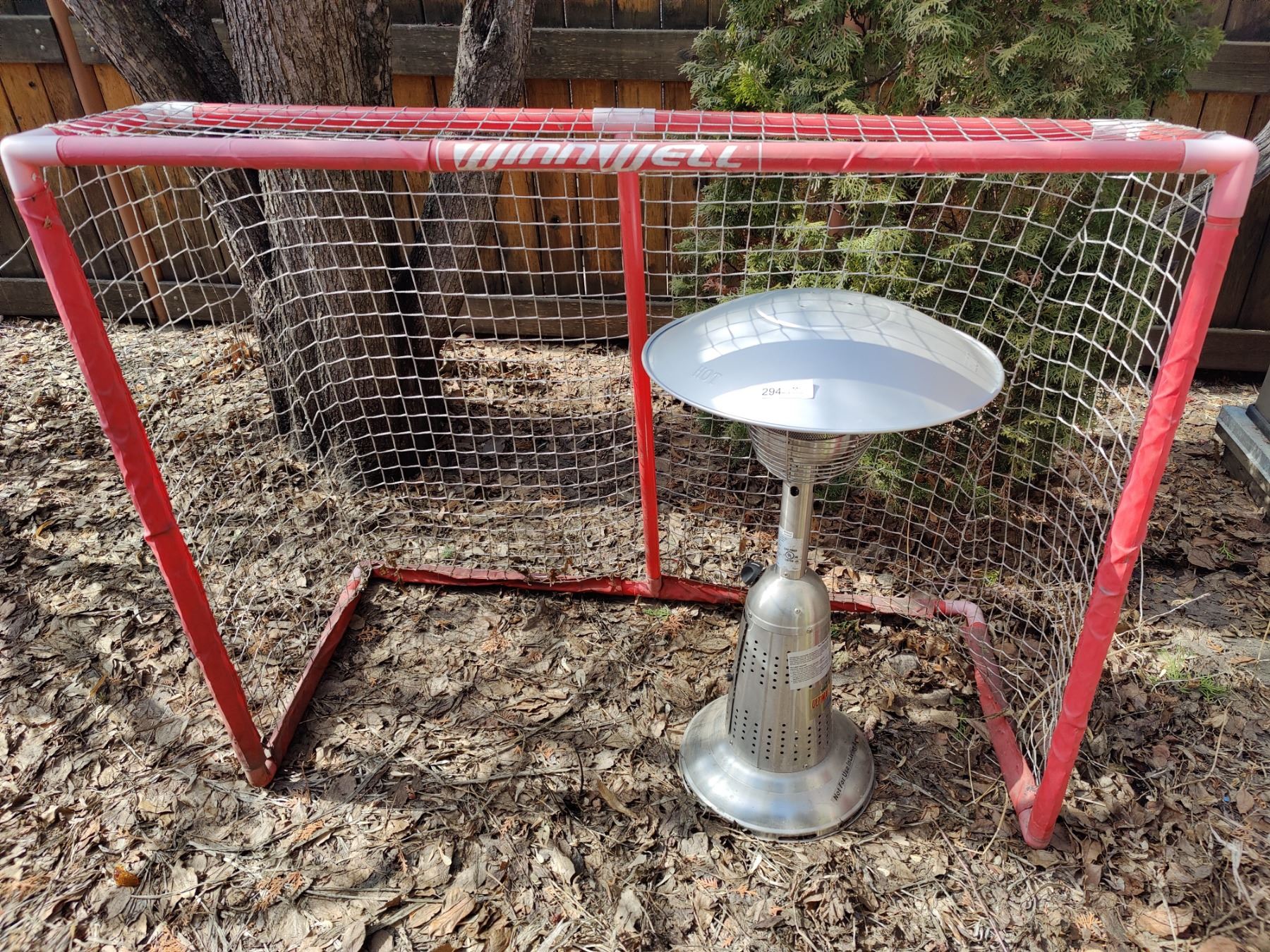 "All-Pro" Tabletop heater. Mo.#SPC-21-TSA and a "Windwell" plastic hockey net.