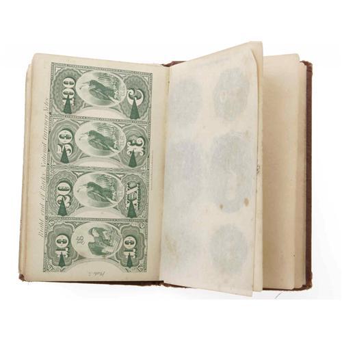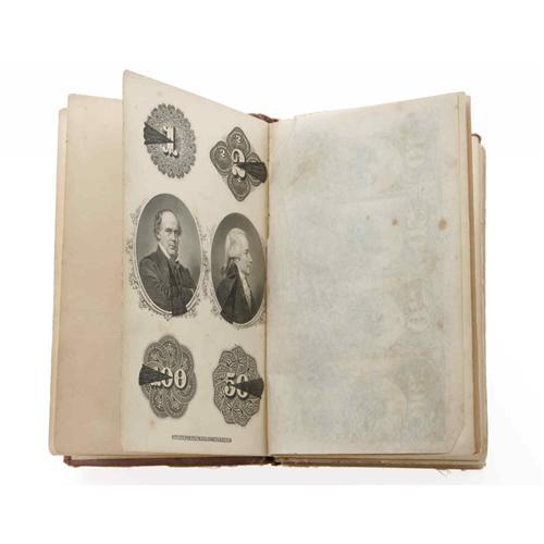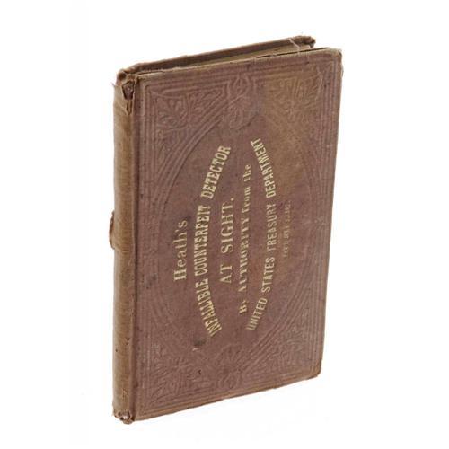 <B>Heath's Infallible Counterfeit Detector Pocket Edition.</B></I> This is a Second Edition of 1866 volume with several loose pages. It is a bit worn, but complete. An interesting period newspaper article on Heath's is also tipped in.