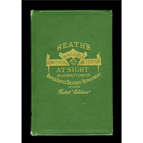 <B>Heath's Infallible Counterfeit Detector Pocket Edition.</B></I> Twelfth edition 1877, beautiful condition, tight in its binding with all the plates present.<BR><BR><b>Shipping:</b> Coin/Currency (<a target="_blank" href="http://www.heritageauctions.com/common/shipping.php">view shipping information</a>)
