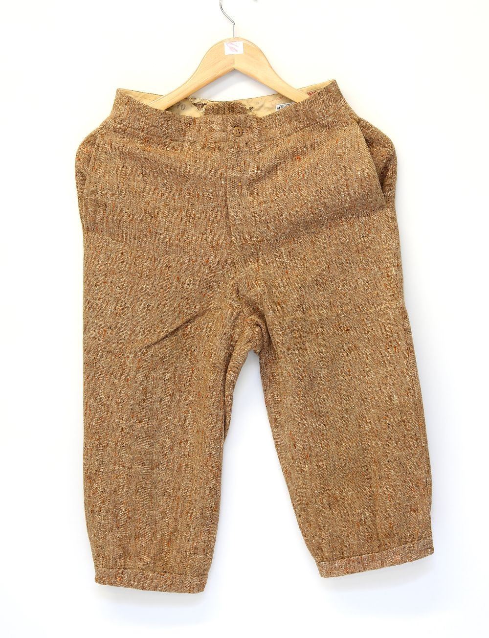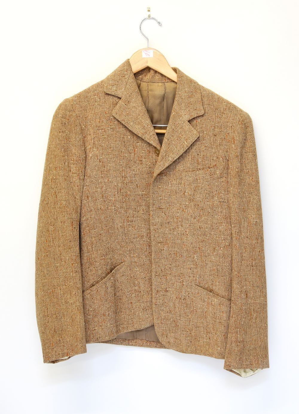Heaven Can Wait (1943) - Dickie Moore as Henry van Cleve, production made two-piece suit comprising beige tweed blazer jacket and matching trousers. The jacket with Western Costume Co stamp, barcode (40515177) and ink inscriptions to inside. The trousers with inscribed Western Costumes Co label (No.03, Name: Dickie Moore, Waist 20), barcode (40491571) and ink inscriptions within.