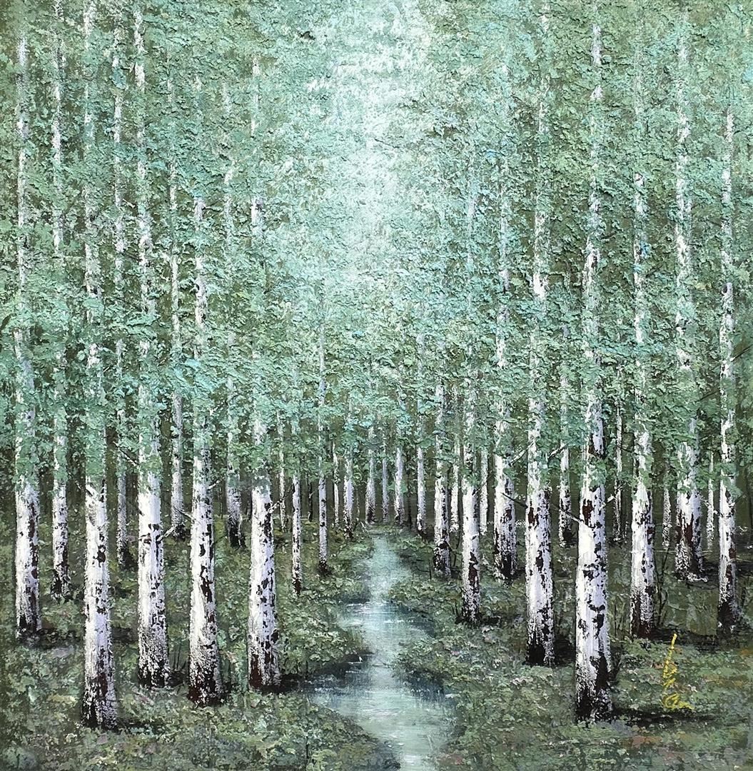 A stunning landscape in the classic impressionist style, with heavy impasto, by world renowned artist Inam. 43"x43"" original on canvas, with COA