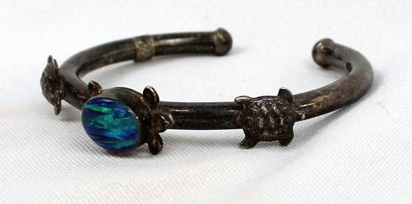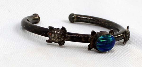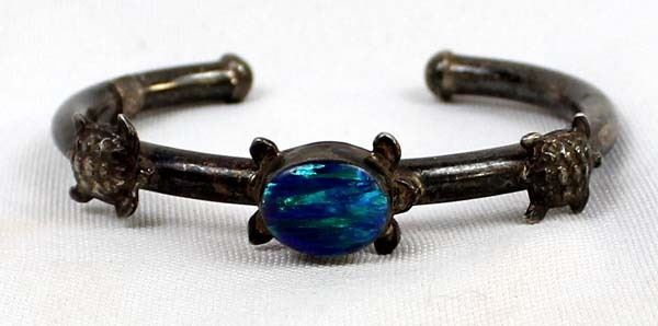 Heavy Cast Metal Turtle & Paua Shell Bracelet, inside measures 7'' which includes the gap x .5''W, total gram wt. of 31.77
