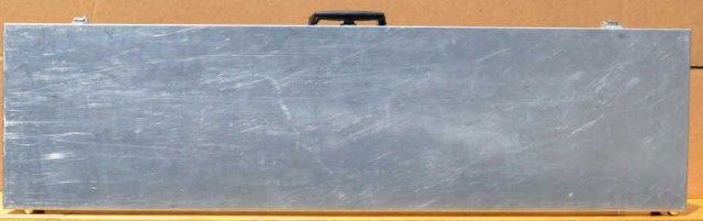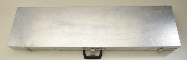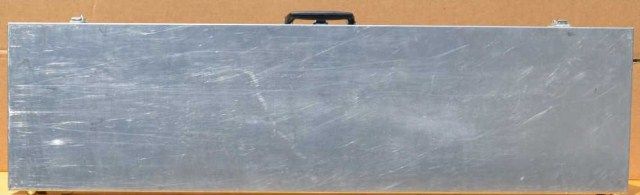 Heavy Duty Aluminum rifle case by KMP in overall very good condition with foam interior, approx 52” long x 14” wide x 4-1/2” deep. Vintage case for antique single shot rifle in very good condition. ProbablyStevens or Ballard. Est.;$400-$800.
