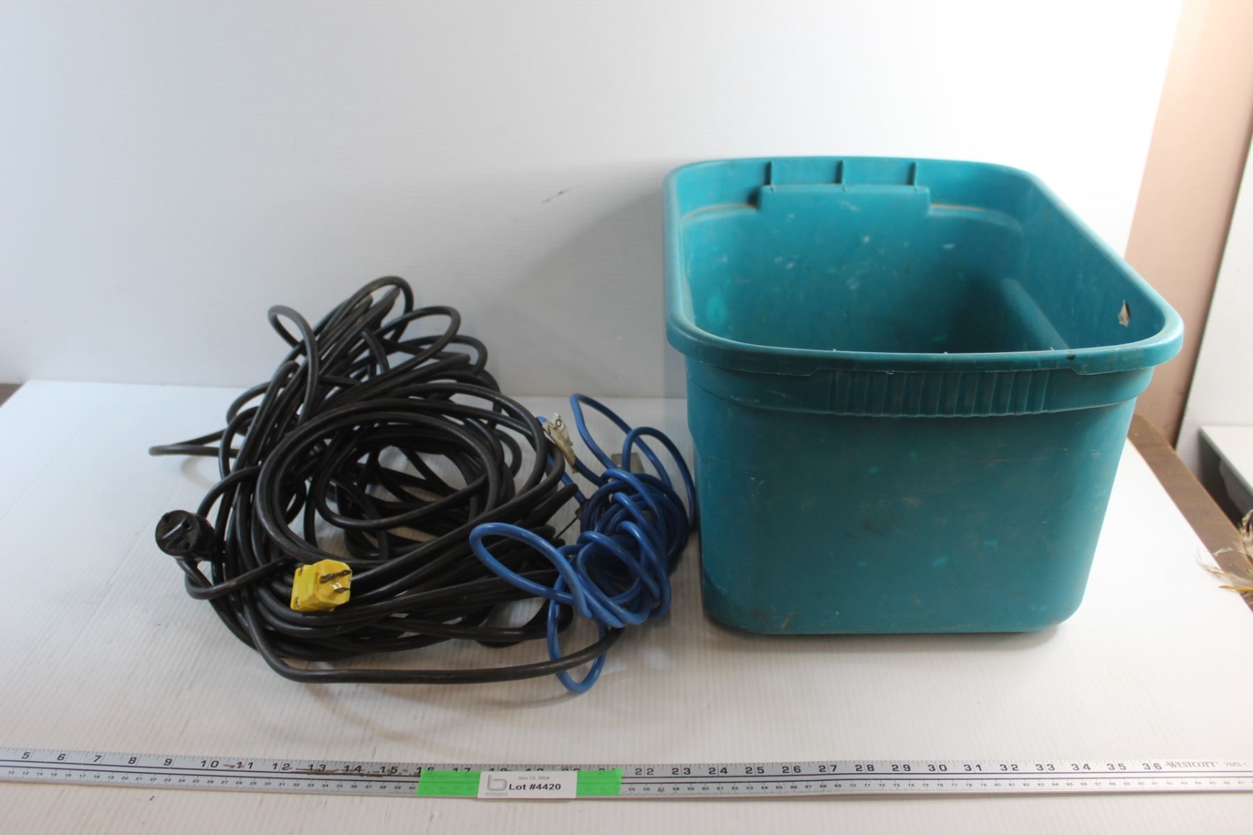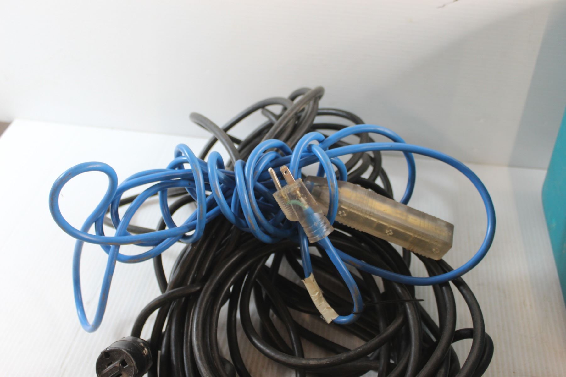 Heavy Duty Extension Cord, Outlet Power Bar - As Is and a Medium Plastic Tote