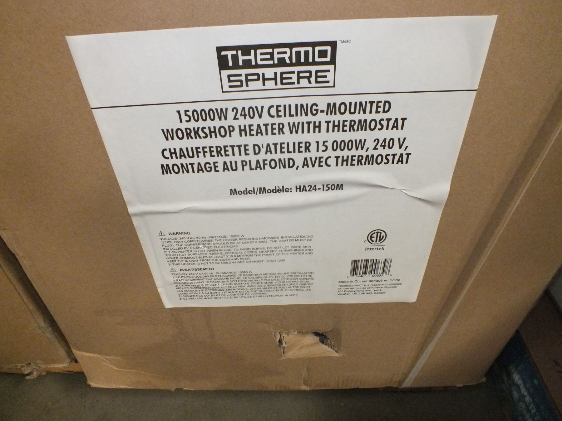 Heavy Duty Fan Forced Ceiling Mount Heater, 15,000 watts, 240 volts...New