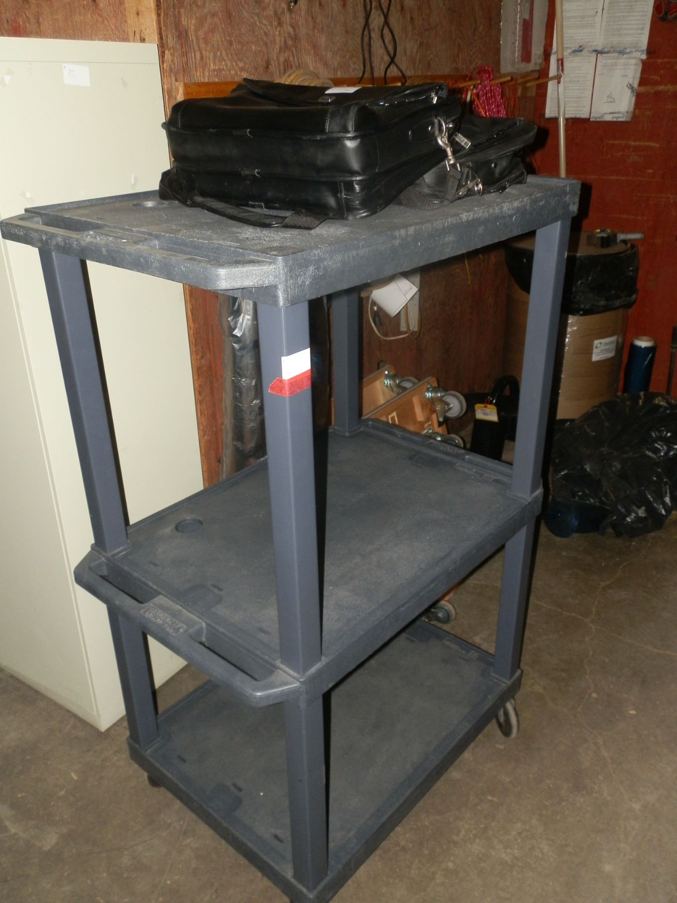 Heavy Duty Plastic Cart on wheels, also comes with 2 laptop bags....used