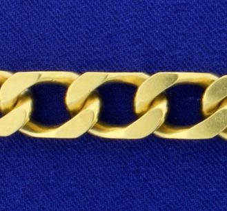 In 14K yellow gold it is 7 1/4 inches long and 10.25mm wide. Has double safety clasps. 56.6g
