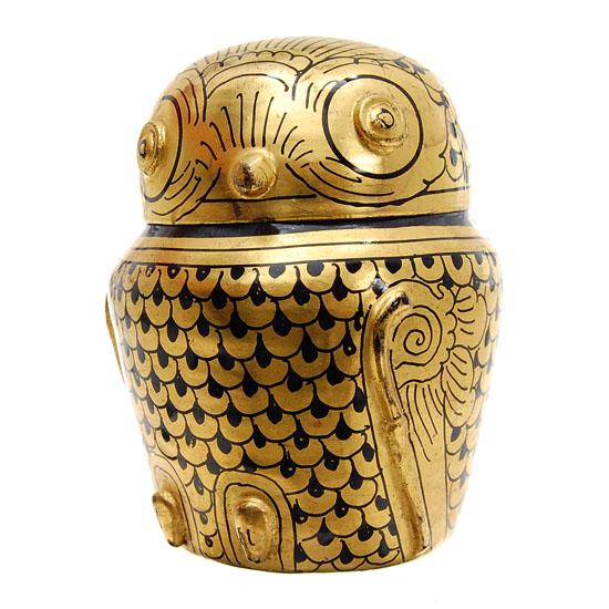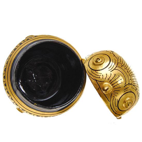 Excellent 24k gilded Burmese laquerware piece with lid; 4"