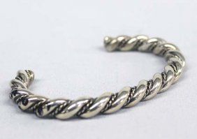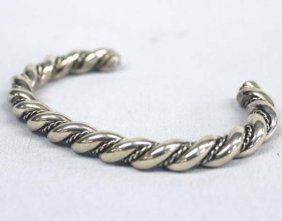 Heavy Navajo Twisted Sterling Silver Guard Bracelet, inside measures 7'' which includes opening x .25''W, 49.71g in total wt
