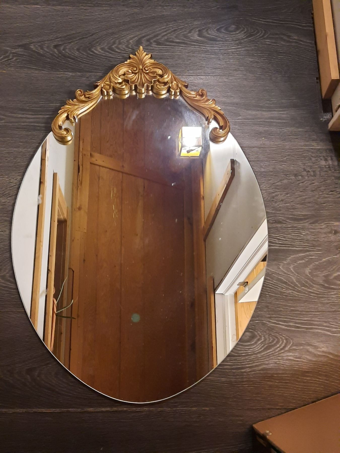 Heavy Oval Mirror with Ornate Gold Detail 22.5x33
