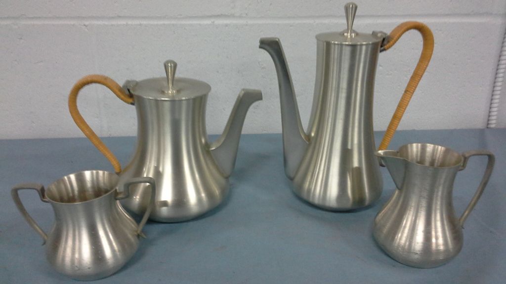 Heavy Pewter Coffee Pot, Teapot, Cream & Sugar (Coffee 9" high, Tea 6.5" high)