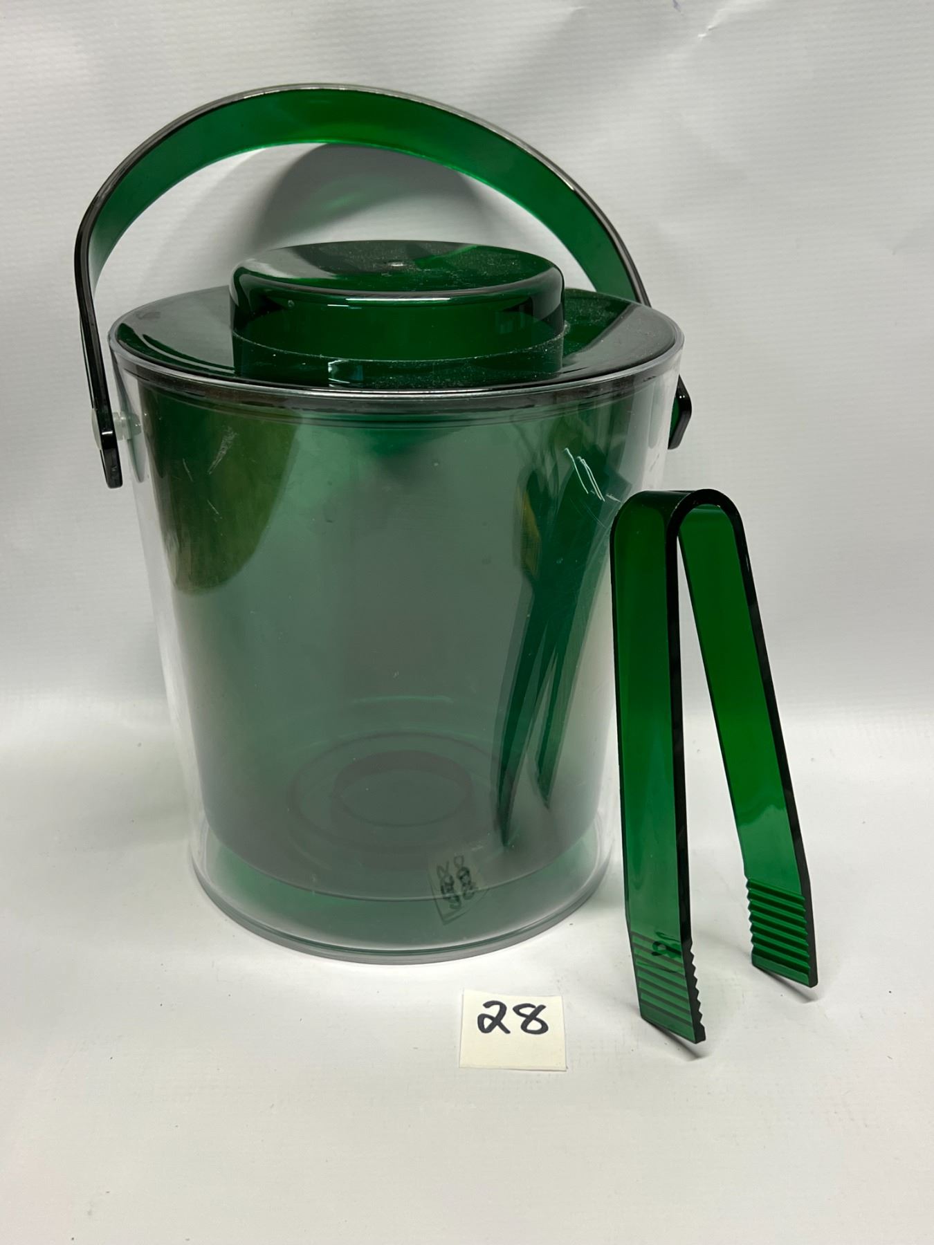 Heavy Plastic Green/Clear Ice Bucket & Tongs Approx 8"x7"
